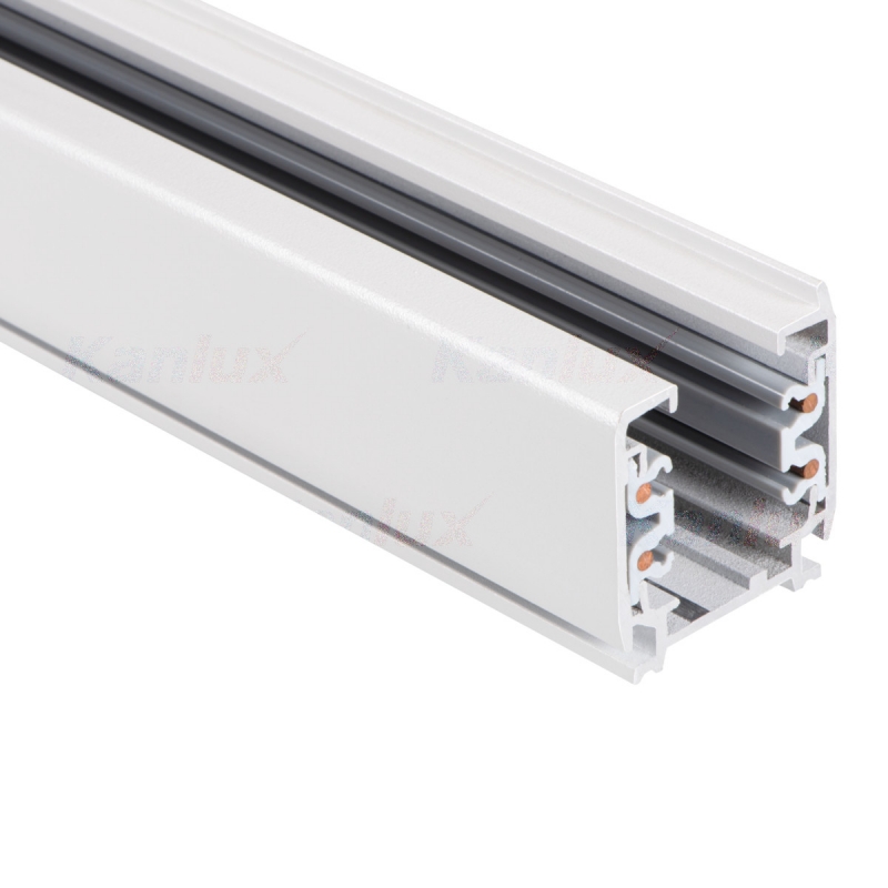 Sbarra collettrice a 3 circuiti progettata per l'installazione degli apparecchi di illuminazione per proiettori. Qualsiasi sistema di sbarre collettrici collegate può essere fornito con un solo collegamento di corrente.