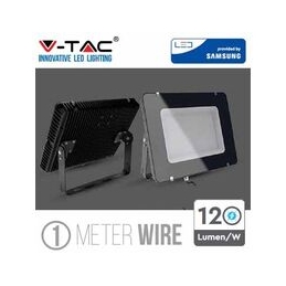Faro LED V-Tac PRO VT-505 con potenza di 500W. Corpo ultra sottile in alluminio pressofuso di colore nero con staffa e cavo da 1 metro dello stesso colore. Copertura satinata in vetro. Proiettore con tecnologia LED SMD adatto all'uso esterno, grazie al grado di protezione IP65. Fascio luminoso di 100° e flusso luminoso di 60000 lm. Questo faro ad alta luminosità ha un rapporto di 120 lm/W. Il design slim, lo rende più leggero di un normale faro e più semplice da installare, oltre ad avere un'estetica più accattivante.