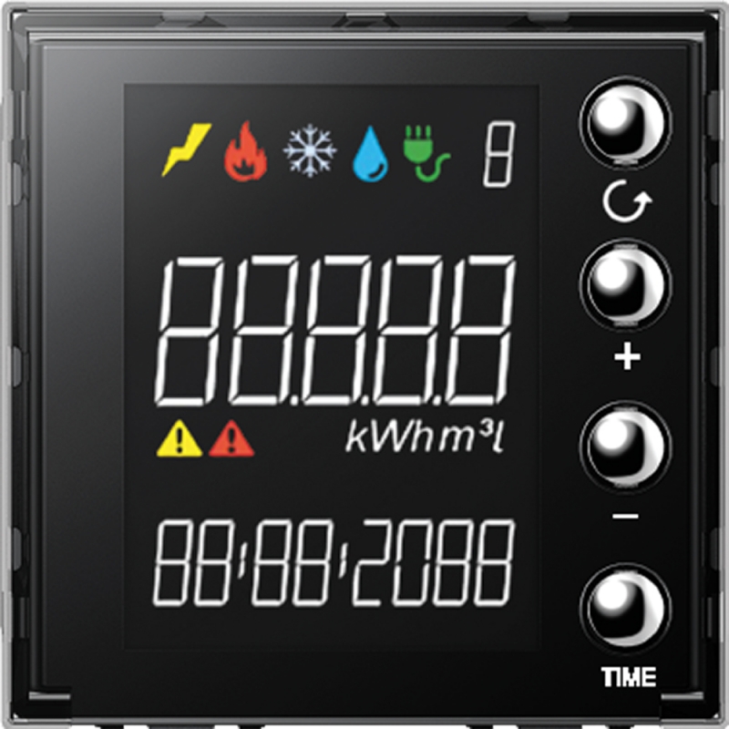 Dispositivo con display 1,6” per la visualizzazione dei dati di consumo di energia (rilevati dai dispositivi misuratori di energia) e per il controllo degli attuatori appartenenti al sistema Gestione energia..