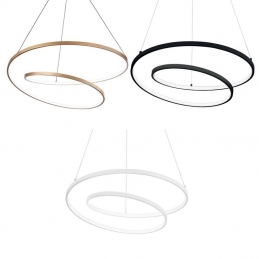 Base e montatura in metallo verniciato a polveri o placcato. Cavi in pvc. Diffusore in gomma opale. Finiture: bianco, nero o ottone spazzolato. Disponibile anche in versione dimmerabile DALI/Push.