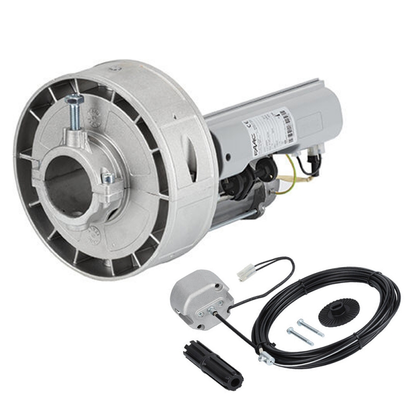 Motoriduttore 230V per serrande avvolgibili. Diametro albero serranda 60 mm e 48/42 mm (con adattatore). Diametro scatole portamolle 200/220 mm.